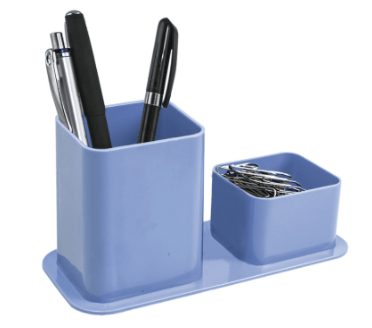 Porta canetas injetado em poliestireno com 7 divisões como opções de uso.